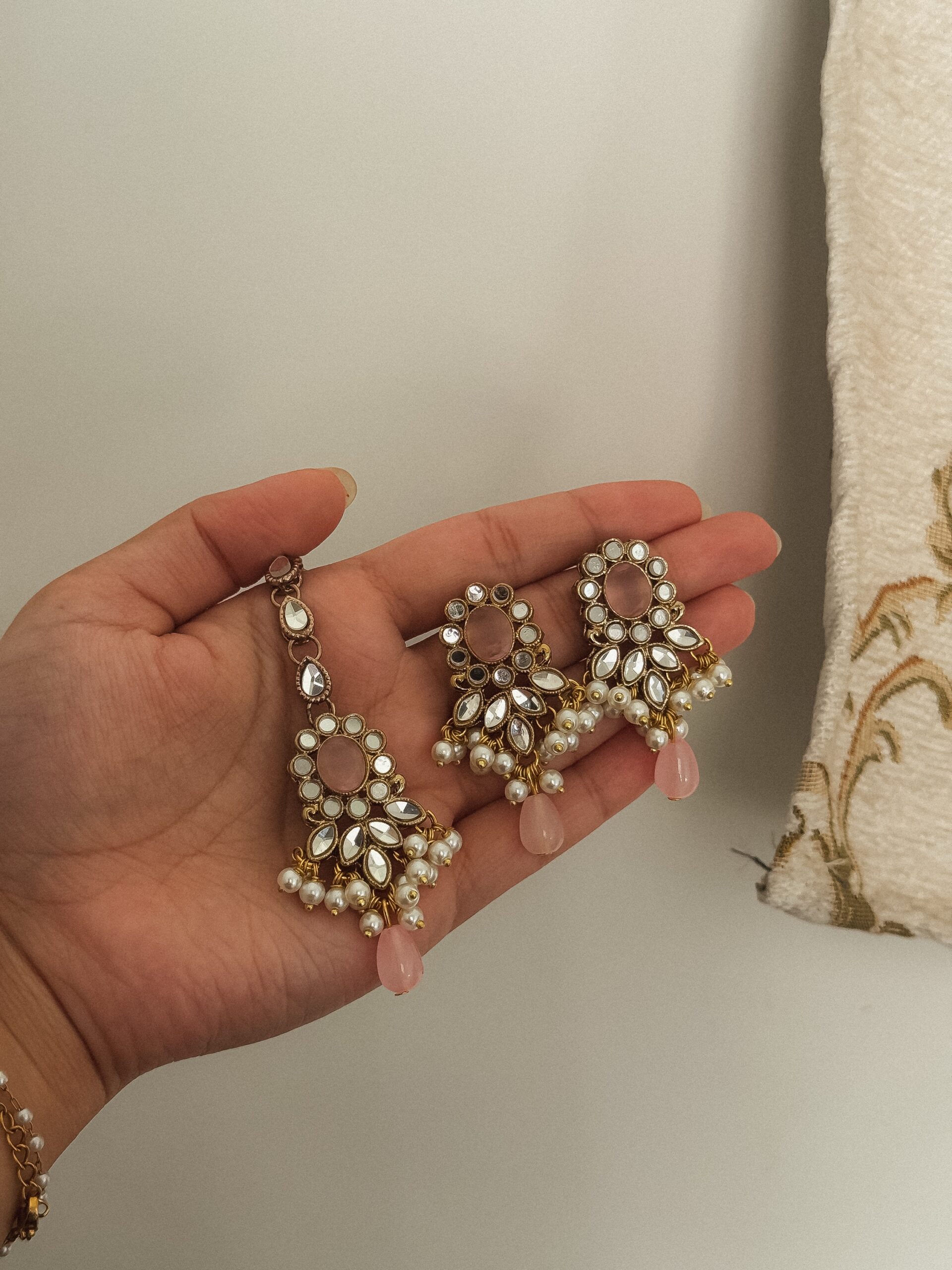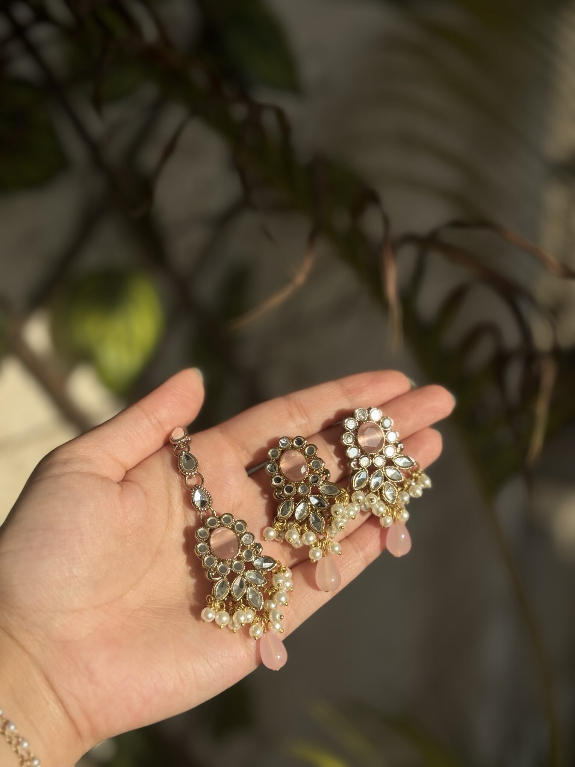 A set of timeless kundan earrings with bindiya