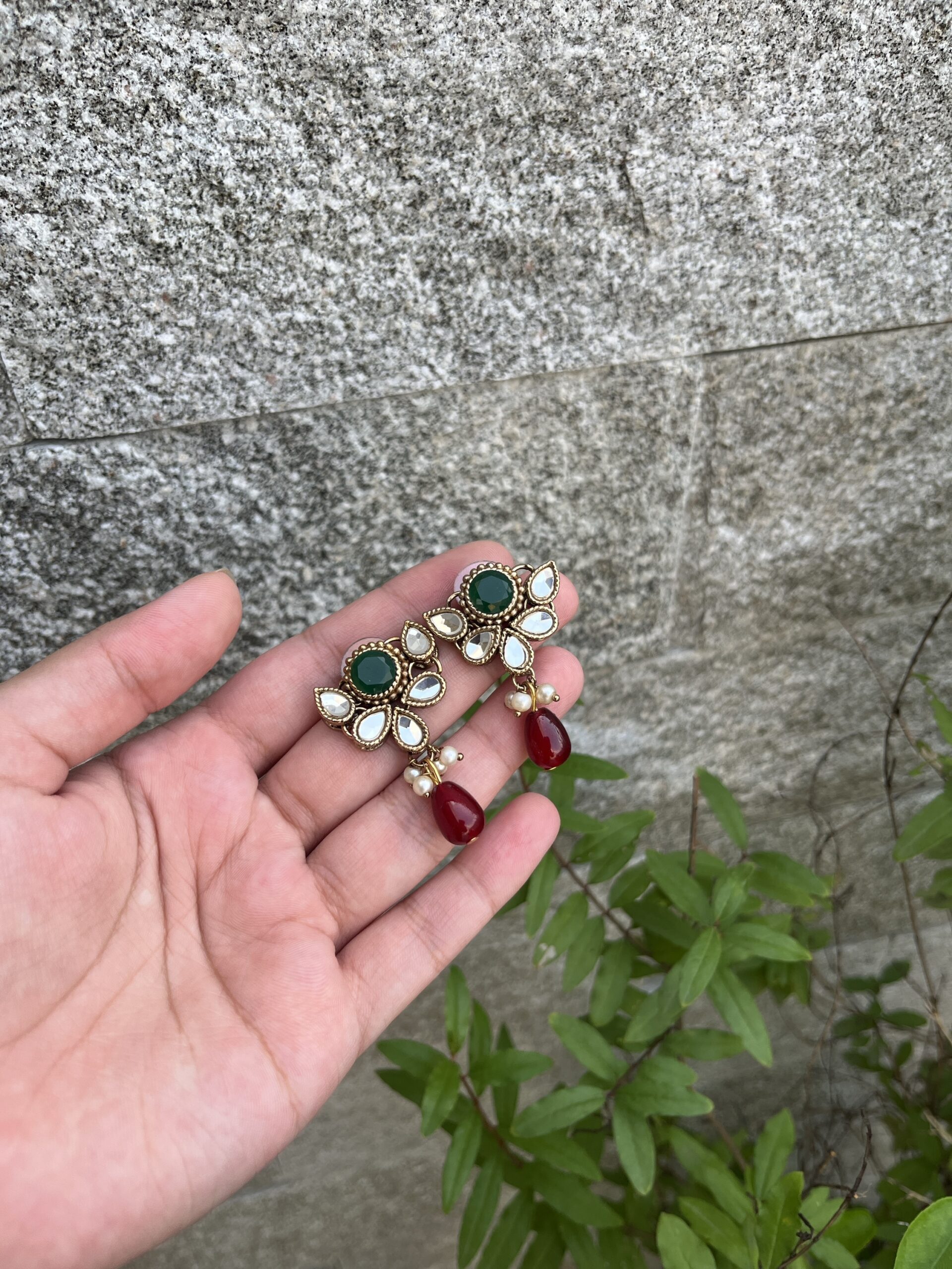 The elegance of kundan, the charm of pearls, and the pop of ruby red — earrings that bloom with heritage and style.