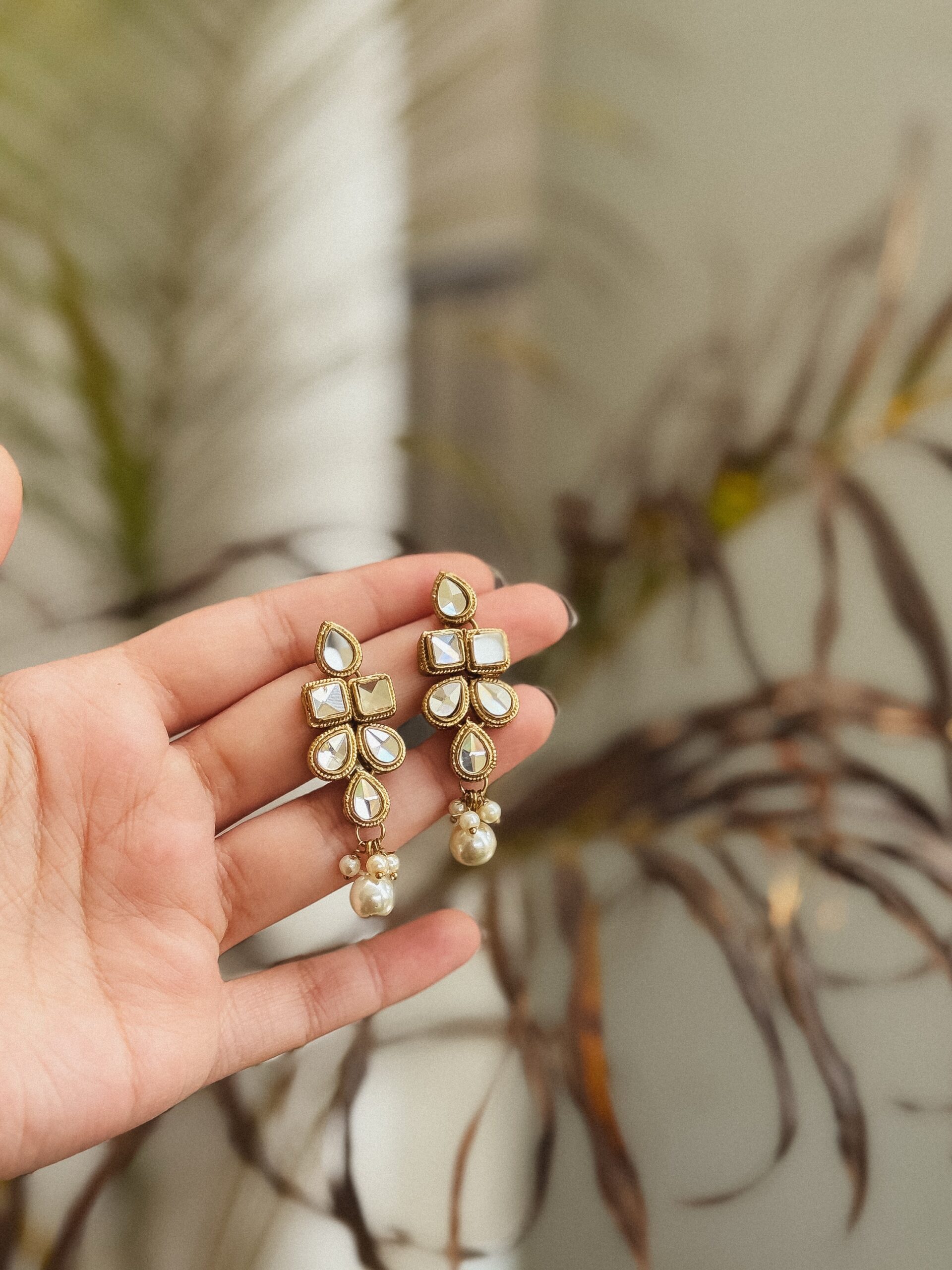 Kundan earrings, made with mirror work and pearl. Perfect for Festive season!